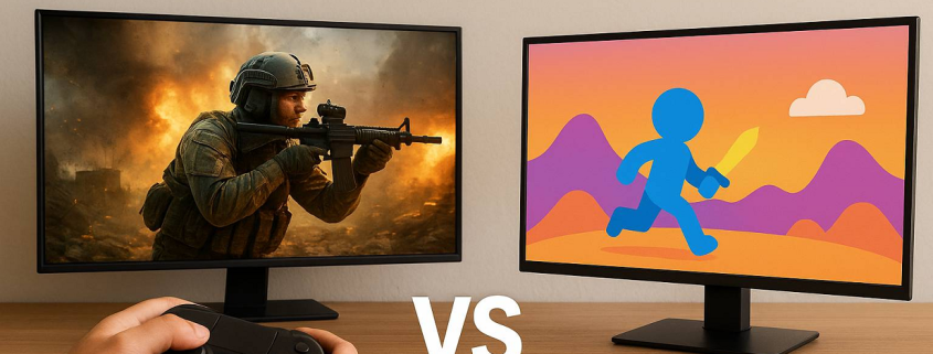 در مقابل، مانیتورها عمدتاً ۲۴ تا ۳۴ اینچاند (اولتراوایدها تا ۴۹ اینچ)، اما شما نزدیک مینشینید. نزدیکی به صفحه باعث میشود حرکات ریز را بهتر کنترل کنید و روی جزئیات HUD تمرکز بالاتری داشته باشید؛ مزیتی جدی برای بازیهای رقابتی مثل تیراندازیهای اول شخص و MOBA که هر میلیثانیه اهمیت دارد.